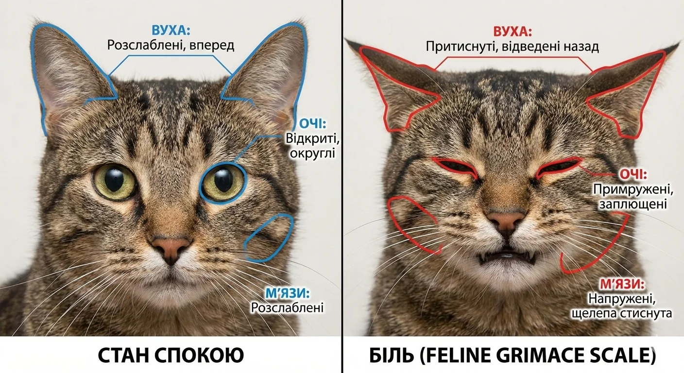 Фелінологічна медицина стикається з унікальним викликом: коти еволюційно пристосовані приховувати будь-які ознаки фізичного дискомфорту. Це маскування часто призводить до того, що власники помічають патологію, зокрема остеоартрит, лише на пізніх стадіях. В АртВет ми використовуємо спеціалізовані методи оцінки, такі як клінічна шкала виразу обличчя, що дозволяє об'єктивізувати рівень болю за ледь помітними змінами міміки тварини. Наукові дані вказують на те, що тривалий неконтрольований біль веде до центральної сенситизації: стану, при якому нервова система стає патологічно чутливою до будь-яких стимулів.